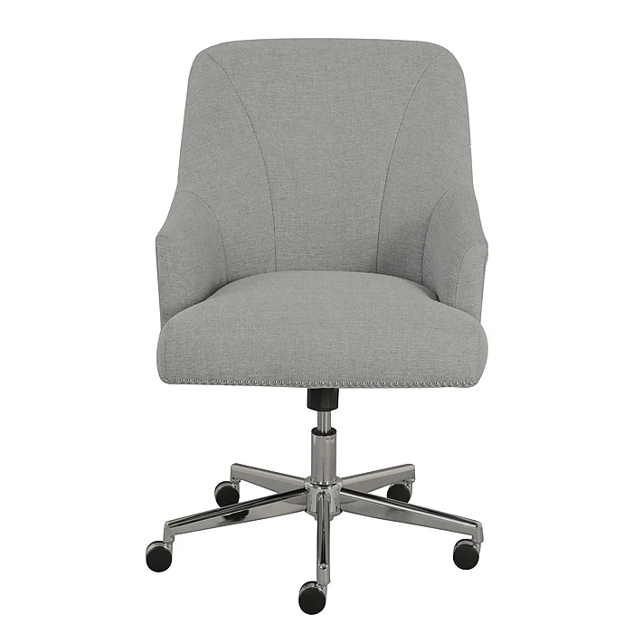 Add a touch of modern elegance to your space with a design that is equally functional and stylish. This expertly-wrapped, neutral design is height-adjustable to tailor your professional space. The chrome-finished, stainless-steel stand offers you 360-degree swivel and casters for easy mobility. The memory foam seat and arms with pocket coils feature renowned Serta comfort, perfect for home or office use.