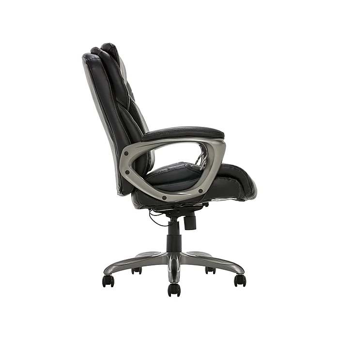 - Upholstered in soft and supple black bonded leather with accents in silver color