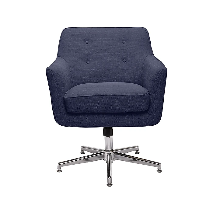 - Twill upholstery in blue; chrome-finished stainless steel base with casters offers 360-degree mobility