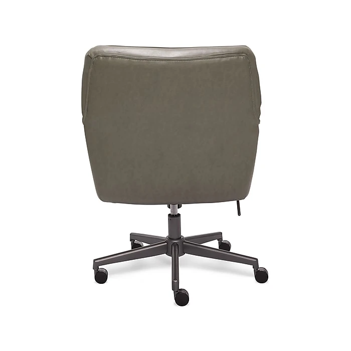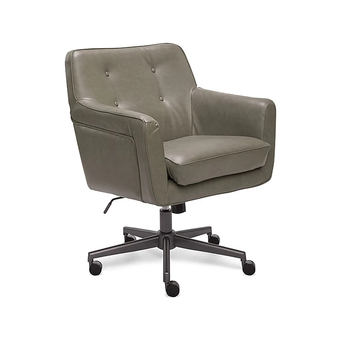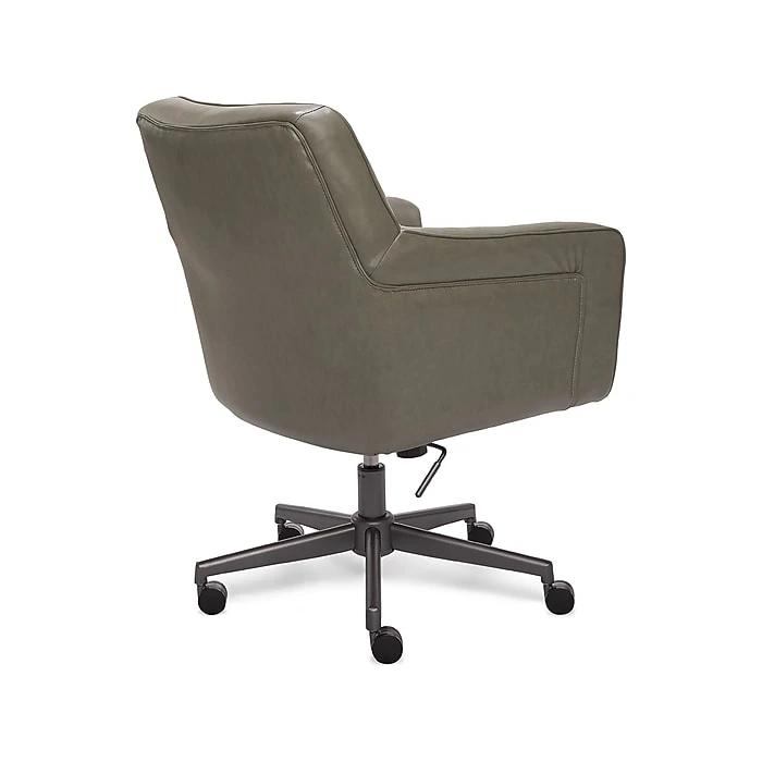 - Gray bonded leather cushioned seat is easy to clean with a damp cloth; chrome-finished stainless steel base with casters offers 360-degree mobility