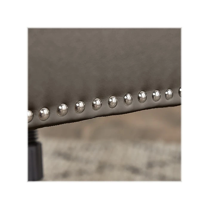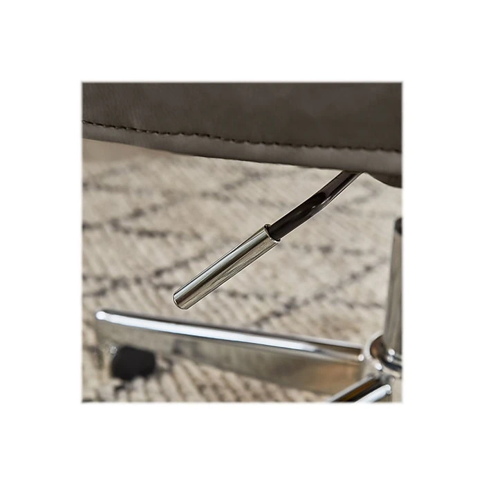 - Gray bonded leather cushioned seat is easy to clean with a damp cloth; chrome-finished stainless steel base with casters offers 360-degree mobility