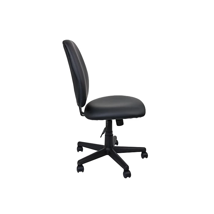 Give your staff customizable comfort with this Haydn mid-back task chair. The adjustable seat height, tilt tension and tilt lock make it easy for each employee to find the perfect configuration, while the armless design provides greater freedom of movement. Soft Luxura upholstery offers an inviting texture along with simple, understated style. This chair comes with built-in lumbar support for added comfort as you work through your day. The five-star base and dual-wheel casters mean you can roll this Haydn mid-back task chair effortlessly from room to room.