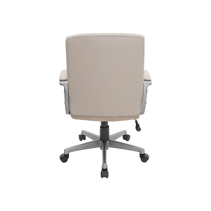 Stay comfortable while you work in this Tervinaâ„¢ taupe managers chair. Padded armrests provide added comfort, and built-in lumbar offers additional support. The soft upholstery looks and feels just like real leather for an elegant finishing touch. Use the pneumatic seat height adjustment and tilt tension to find then lock the perfect setup for your body.