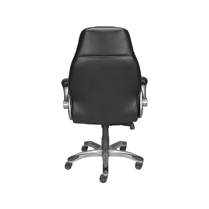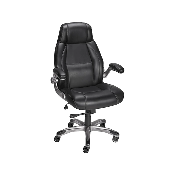 Sit back and relax as you manage your company’s day-to-day operations with this Torrent managers chair. Padded flip-up arms make it easy to get in and out of the thickly padded seat, while built-in lumbar support and a headrest provide added cushion for marathon work sessions. The adjustable tilt tension control and tilt lock make it easy to find the perfect angle of recline, while a pneumatic height adjustment lever lets you move the seat up and down to suit your personal preferences. With soft bonded leather upholstery and a simple silhouette, this Torrent managers chair offers both modern executive style and exceptional comfort.