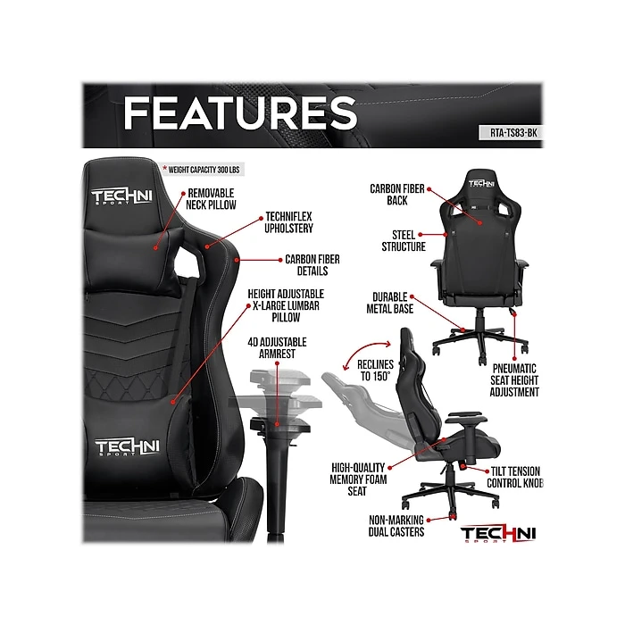 - Take your gaming to the next level and extend your hours of sitting by adding extra features to your setup with Techni Sport chair