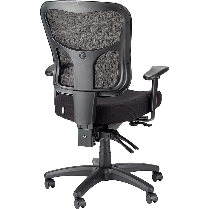 Create a more relaxing office environment with this Tempur-Pedic ergonomic mid-back office chair. Breathable mesh construction lets air circulate between you and the seat back, helping to keep you cooler as you work. The TEMPUR memory foam cushion offers added cushion and support for all-day use, while the built-in lumbar support provides relief for sore and strained muscles. With its five-star base and rolling casters, this desk chair moves easily from your workstation to file cabinets or printer stands. Use the adjustable arms to find the perfect height and width for your frame, and move the seat up and down using the pneumatic seat height adjustment lever. This Tempur-Pedic ergonomic mid-back office chair features center tilt, forward tilt and tilt lock, so you can recline comfortably in between projects.