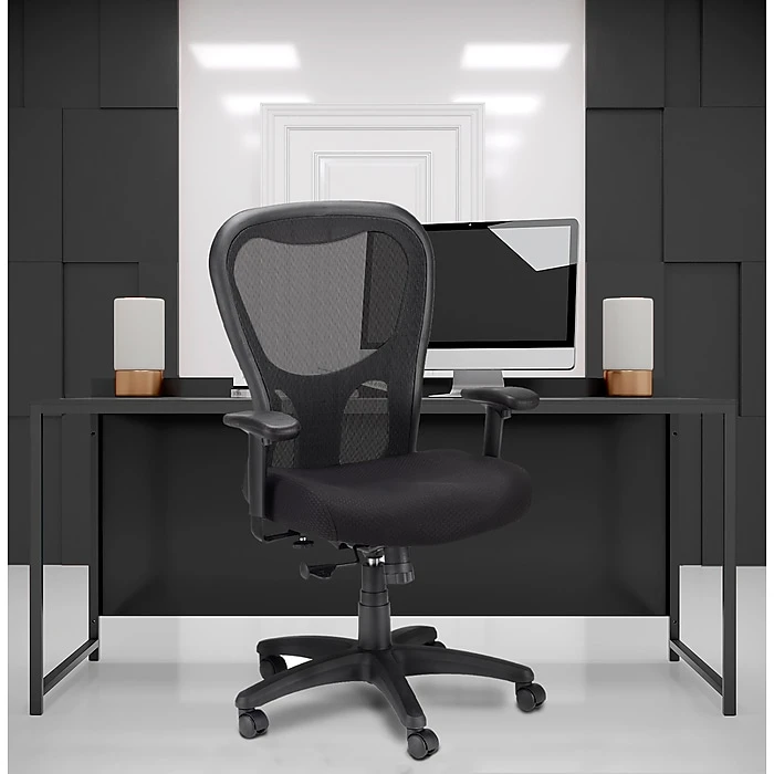 - Black mesh upholstery allows air to circulate