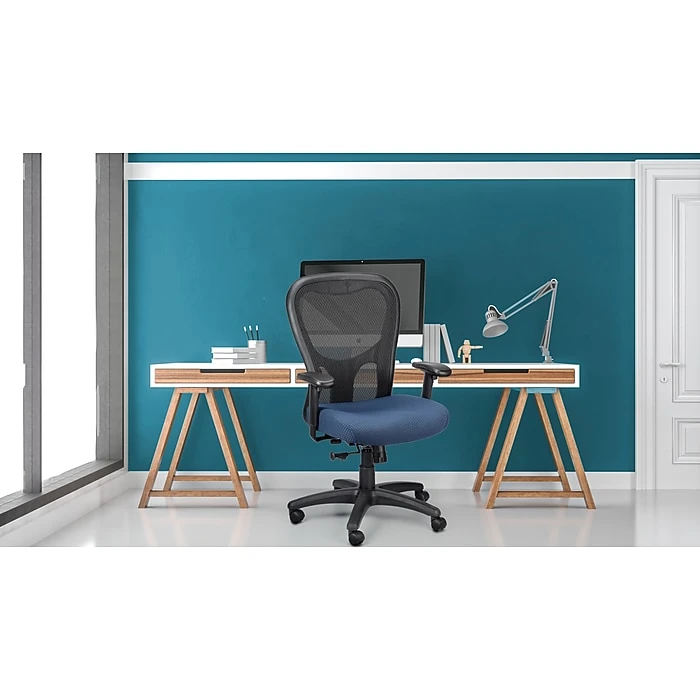 - Navy Blue mesh upholstery allows air to circulate