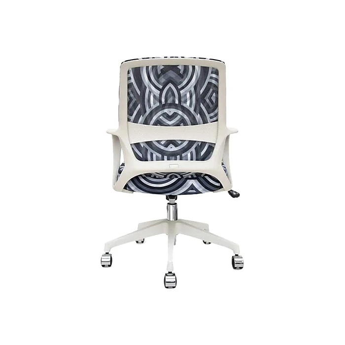 - Features a patented ESC fabric upholstery in a Grayscale Echo design and a white base with silver-tone accents