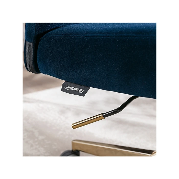 Featuring plush cushioning, clean lines, and a tailored silhouette, the Thomasville Joelle office chair is an inviting blend of comfort and style. With velvety micro-suede upholstery and metal in gold-tone plating, this office chair is well-suited to a range of decors. Ergonomic and adjustable, this modern desk chair is fitted with a pneumatic lift mechanism to control the seat height for optimized body alignment. Finished with sturdy rolling wheels, this executive office chair allows you to move quickly and efficiently. Bring sophisticated style to any office with the Thomasville Joelle office chair.