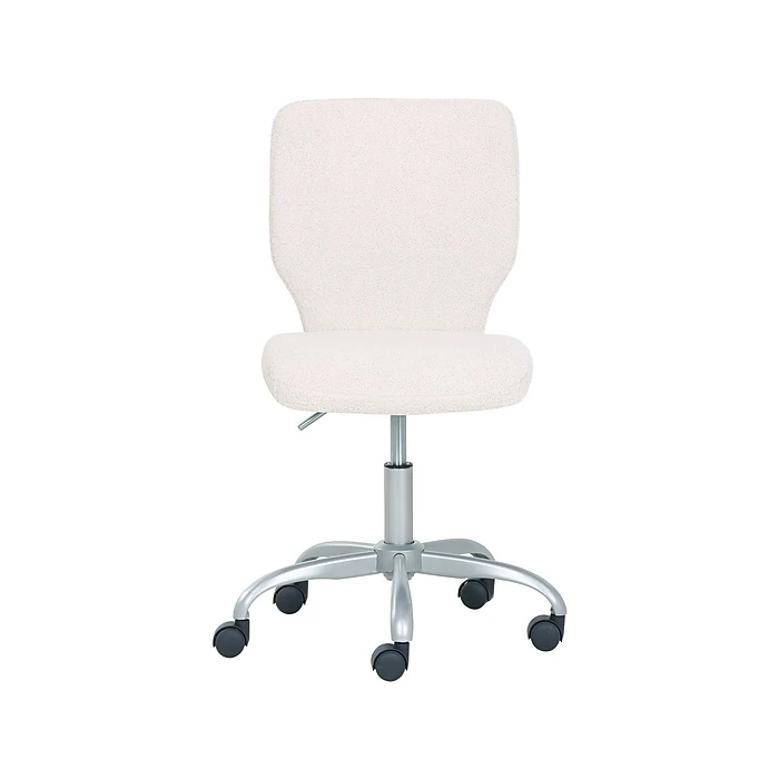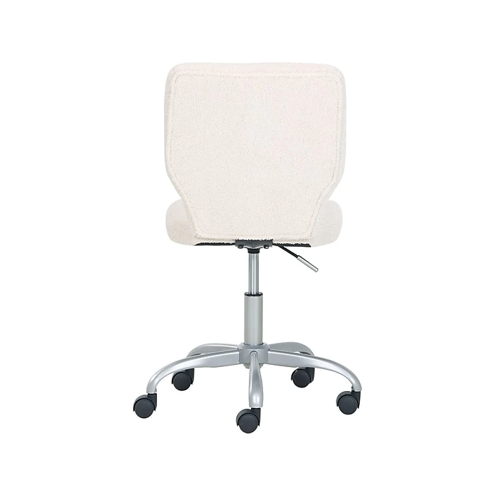 The True chair provides all-day comfort for you. Upholstered in soft Sherpa ivory fabric on all seating surfaces. A padded seat and back for additional comfort. Pneumatic seat height adjustment for convenient use. Weight capacity up to 250 lbs.