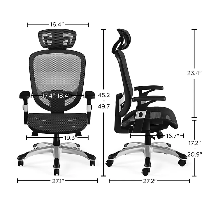 Speed through your deadlines comfortably with this mesh task chair. Adjustable armrests and seat height let you customize your seating position, while the mesh back regulates airflow for a cool working environment. Fine-tune recline resistance to your preference with the convenient tension knob and lock the back in a vertical position with the upright tilt lock. The ergonomic design and adjustable lumbar support contour to your body for maximum stability and comfort, and the five-star base with casters offers effortless mobility. This FlexFit Hyken mesh task chair meets ANSI/BIFMA standards for product safety and performance and features an adjustable headrest to cradle your head and support your neck.