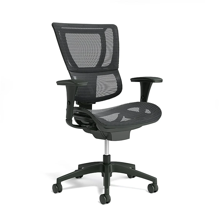 Upgrade to an upscale seating solution with this mesh task chair. Integrated lumbar support minimizes the strain on your back as you work long hours, while the accessible lever adjusts your seat height for better posture. The tilt tension knob lets you configure the recline function effortlessly, and the synchro-tilt seat plate facilitates a natural reclining motion. Adjustable armrests offer easy customization, while the infinity tilt lock easily locks in an upright or angled position for flexible options. This FlexFit 1500TM black mesh task chair has five caster wheels, so you can move freely around your work area, and meets ANSI/BIFMA standards for product safety and durability as a reliable update option for your desk.