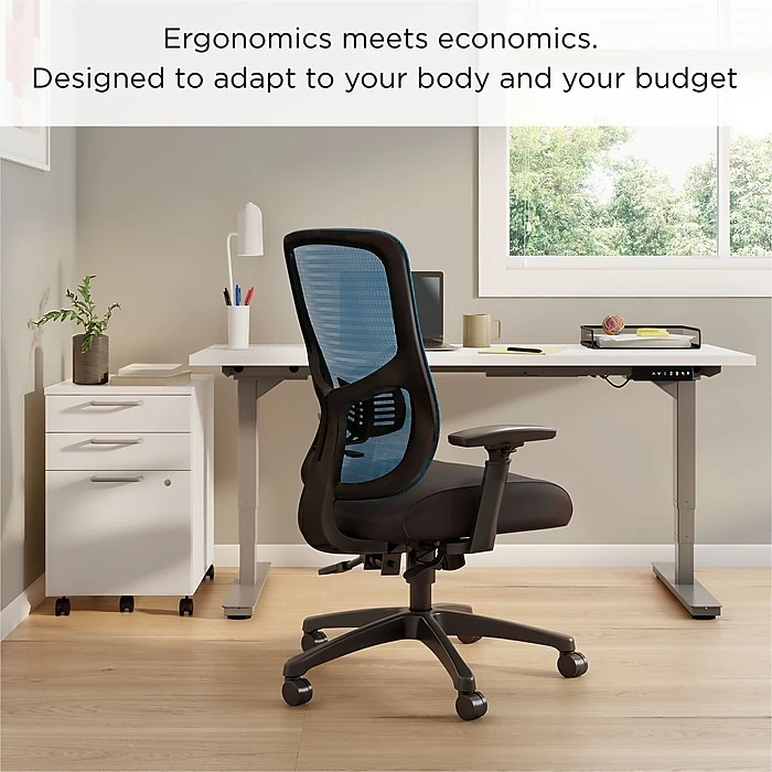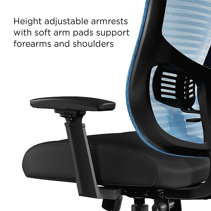 Equip your office or conference room with this task chair. A contoured padded seat cushions your body to help limit muscle aches, while a breathable mesh back directs warm air away from your body to keep you cool on hot days. The height-adjustable armrests provide personalized upper body support, while the tilt tension knob and infinity lock offer control over your back reclining angle and resistance. Adjustable lumbar lets you find the right posture for your body to help lower the risk of lower back pain. This FlexFit 100 Series Kroy blue task chair has a lever to adjust seat height for comfort and meets ANSI/BIFMA standards for workplace safety and reliability.